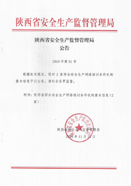 陜西省安全生產(chǎn)監(jiān)督管理局公告2018年第51號