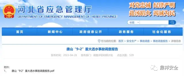 2023年4月28日,河北省應(yīng)急管理廳官網(wǎng)公布了這起事故的調(diào)查報告。經(jīng)調(diào)查認(rèn)定,遷西縣桃樹峪鐵礦有限公司“9·2”重大透水事故是一起生產(chǎn)安全責(zé)任事故。