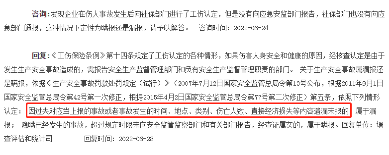 應(yīng)急管理部答復(fù):瞞報事故的認(rèn)定